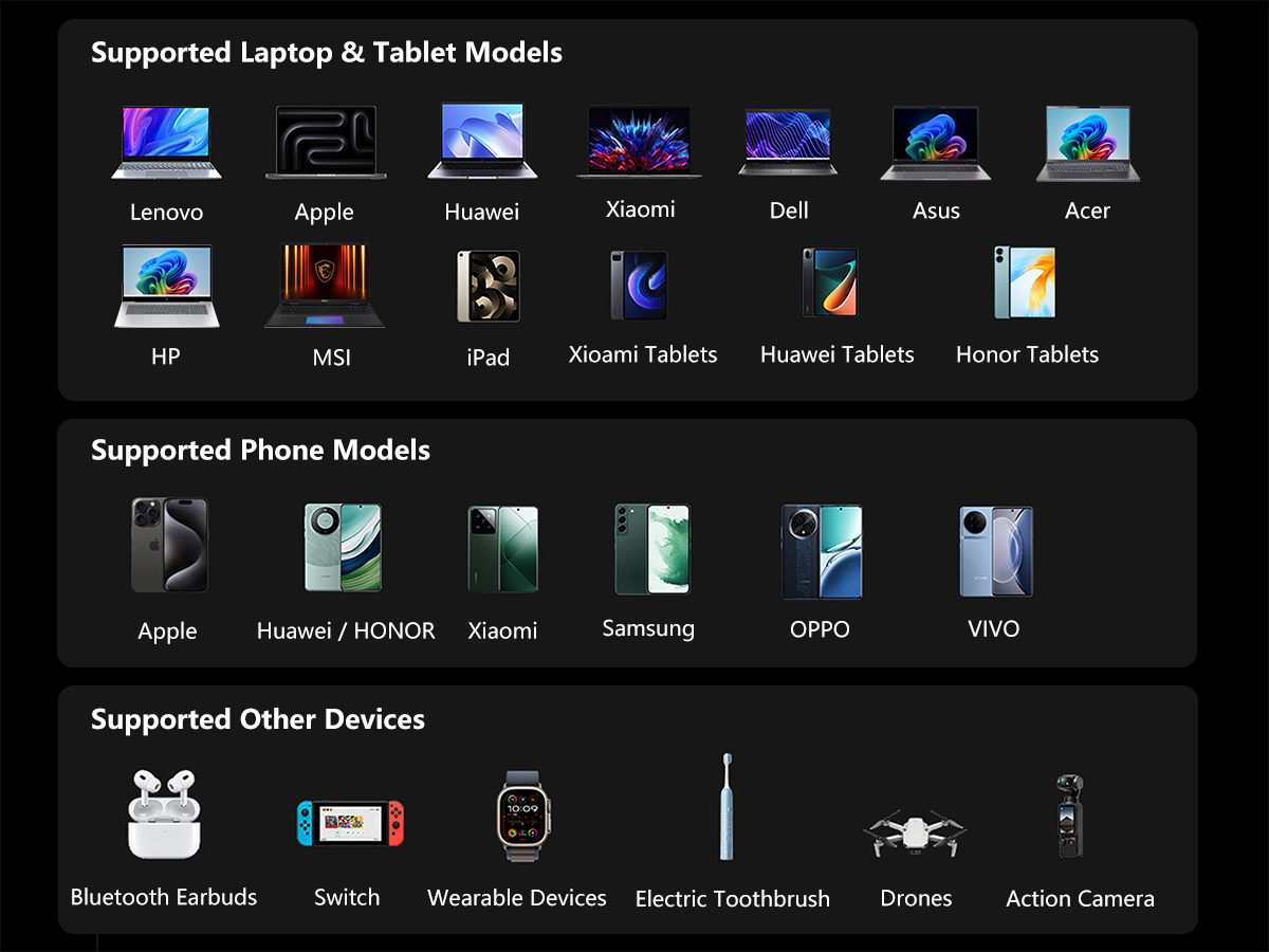 100W Fast Charging for Laptops, Tablets & Phones